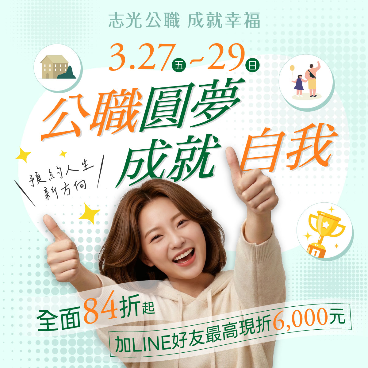 太保志光數位學院於 推出國考課程限時 66折起 優惠,涵蓋高普考、地方特考、司法特考、警察考試、教甄資、證照等新班課程。雙效學習模式:到點專注學習 + 雲端隨時複習,助您高效備考!