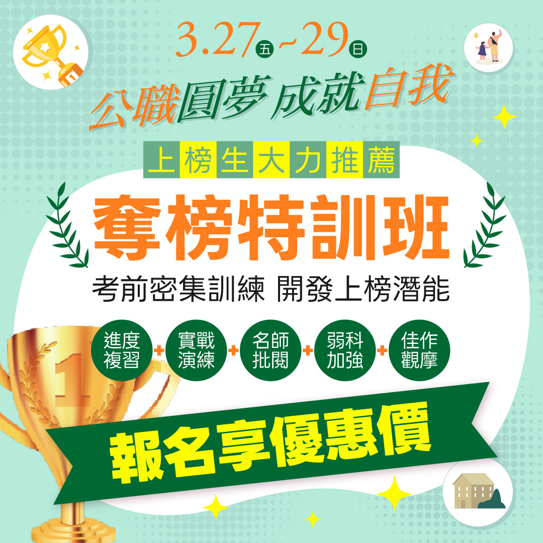 標籤: 高普考 地方特考 司法特考 警察考試 教甄 教檢 專技證照 升學考試