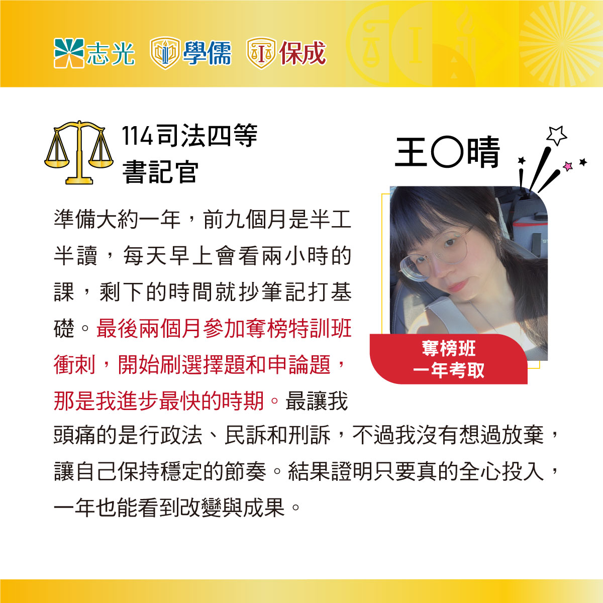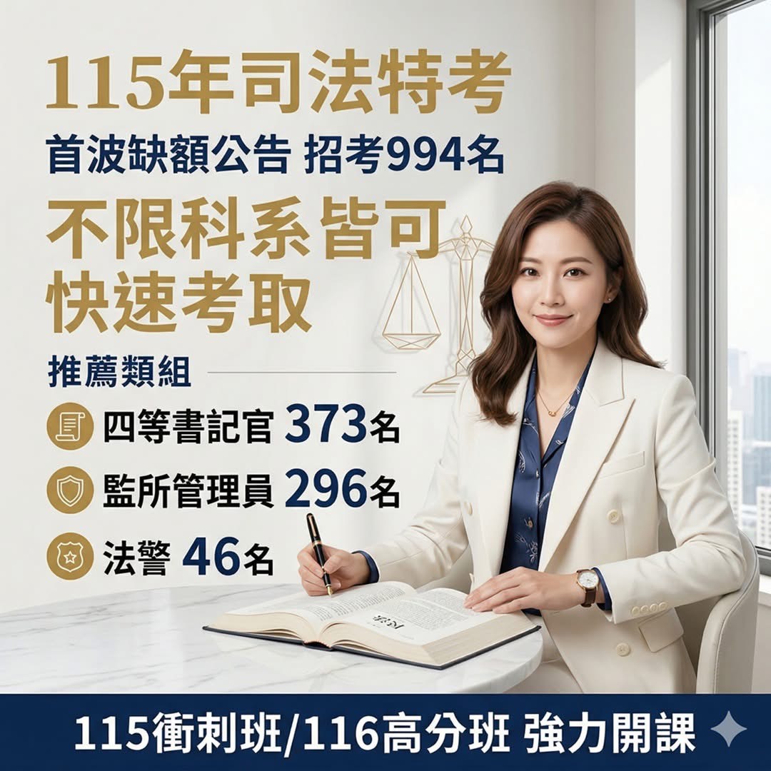 司法特考約每年5月報名、8月固定招考,係因應用人機關司法院及法務部之業務需要而舉辦,招募和司法事務有關的工作職缺。司法人員考試分為三、四、五等,分為檢審、司法行政職系及矯正職系。完整介紹考試科目與工作內容、薪水、歷屆數據、投考組合分析、心得與準備方法、考古題下載、PPT熱搜,規劃個人專屬課程就在,專業輔考就找 民雄中正志光校園門市 05-2720180