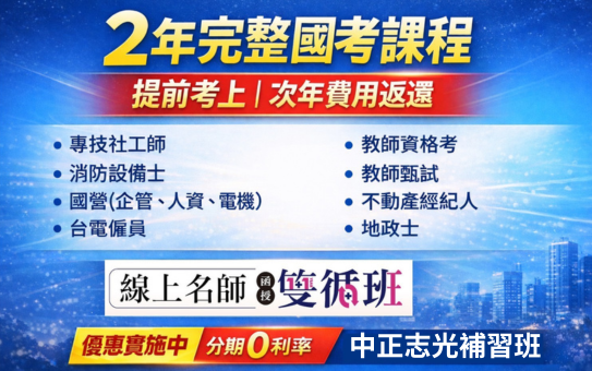 中正志光提供最新教師資格考、公幼教甄、國小教甄、國中教甄招考資訊與歷屆考古題,課程完整涵蓋筆試與複試,搭配彈性雲端學習系統,高效掌握考試重點。深受上榜生推薦,是考教甄的首選!