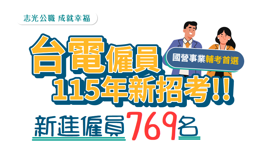 台電近年來因應退休離職潮,為補充現場技術人力,每年約5月舉行台電僱員考試,新進人員薪資37~41K。台電起薪高,薪資福利優。新營志光台電僱員115年衝刺醫會專案實施中,搶進幸福企業趁現在!新營、柳營、鹽水、後壁、東山、白河等地區補公職、國營、教師考試最佳首選,專業輔考就找新營志光06-6352141。