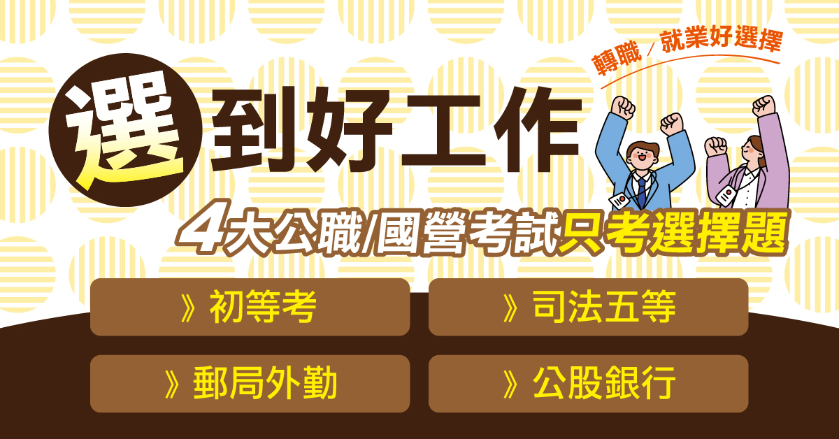高普考|初等考|佐級|地方特考|警察考試(一般)(內軌)|司法考試|國營事業|教師甄試(檢定)|教師資格考|外交特考|身心特考|民航特考|教保員|泛國營事業|地政士|專技高考|專技普考|會計師|記帳士|郵局|鐵路特考|台電|台菸|中油|中鋼|台糖|台灣自來水|社工師|金融基測|消防設備士|不動產經紀人|超級函授|金榜函授|高效函授|超級考試王