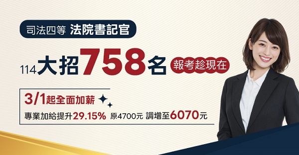 高普考|初等考|佐級|地方特考|警察考試(一般)(內軌)|司法考試|國營事業|教師甄試(檢定)|教師資格考|外交特考|身心特考|民航特考|教保員|泛國營事業|地政士|專技高考|專技普考|會計師|記帳士|郵局|鐵路特考|台電|台菸|中油|中鋼|台糖|台灣自來水|社工師|金融基測|消防設備士|不動產經紀人|超級函授|金榜函授|高效函授|超級考試王