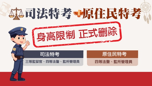 | 司法四等 | 18歲以上,高中(職)以上學歷。(監所管理員、法警應考年齡上限為45歲以下) | |