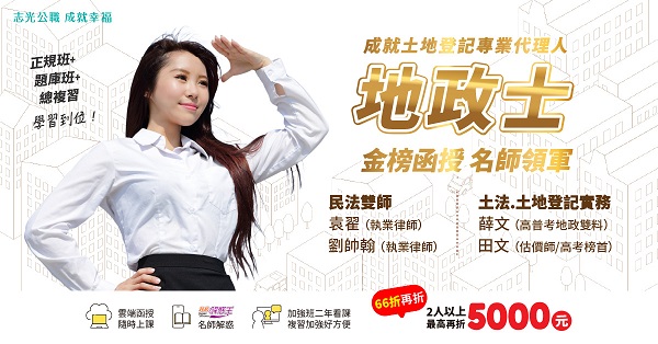 【地政士】耳熟能詳的土地代書,116新班,限時66折