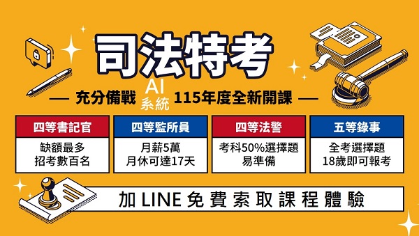 #高考(三級) #普考 #司法特考-三等 #司法特考-四等 #司法特考-五等 #一般警察-四等 #地方政府特考-三等 #地方政府特考-四等 #國營事業聯招新進人員