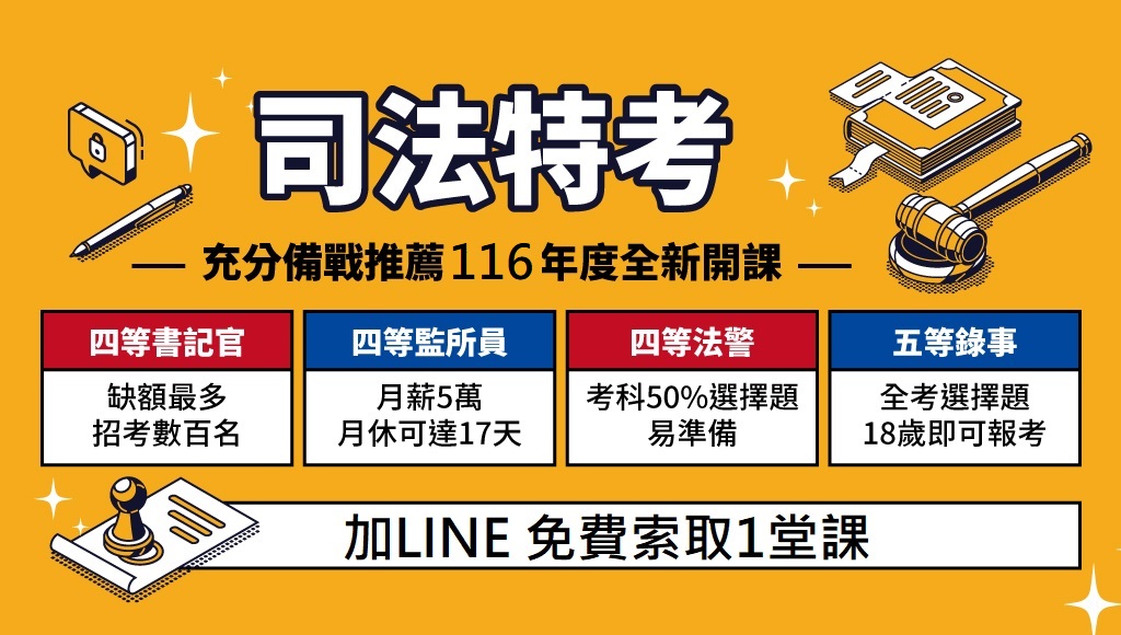 116司法特考新班開課,非本科也能考!115衝榜班折6千