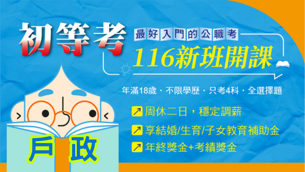 初等考試科目僅考4科, 全部皆為選擇題,考取門檻低,不限學歷,是許多人參加公職考試的入門首選。最新考情速洽:崑山志光 06-2058506