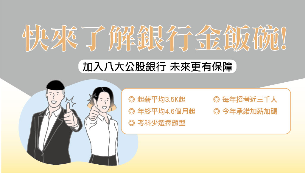 銀行在很多人眼中,算是高薪金飯碗,對於商科生而言, 更是職涯出路選擇之一; 但你知道其實非商科生也能報考銀行嗎? 公股銀行(官股銀行)跟民營銀行有何不同? 銀行考試如何舉辦?每年錄取人數多嗎?福利待遇有多少? 銀行招考資訊懶人包,一次讓你搞懂銀行考試!