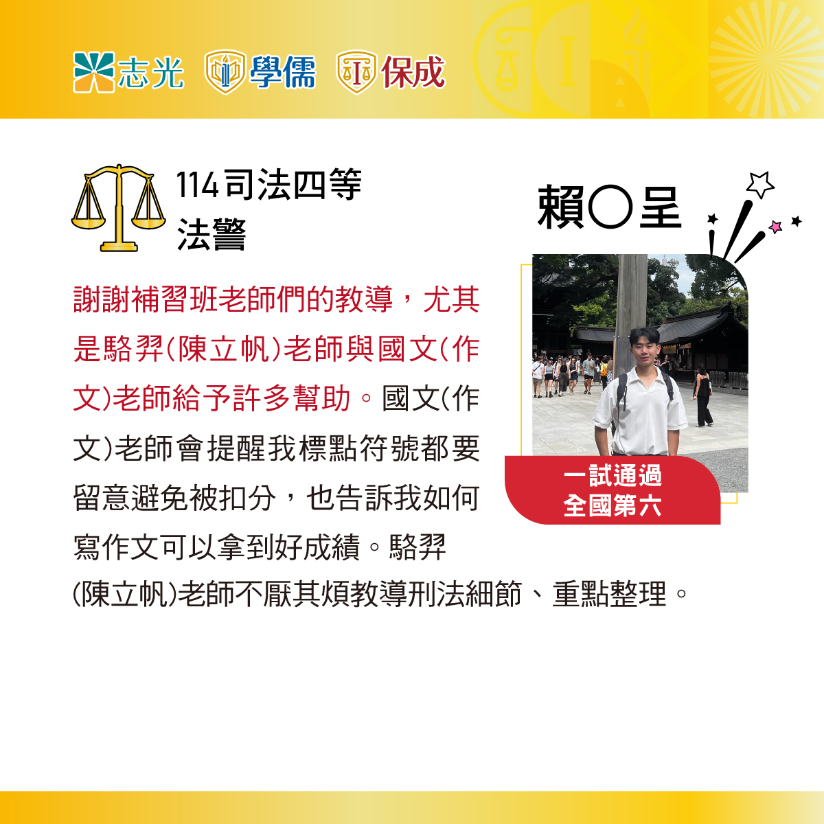 | 共同科目 | ◎1.國文(作文80%、測驗20%) ※2.法學知識與英文(中華民國憲法30%、法學緒論30%、英文40%) |