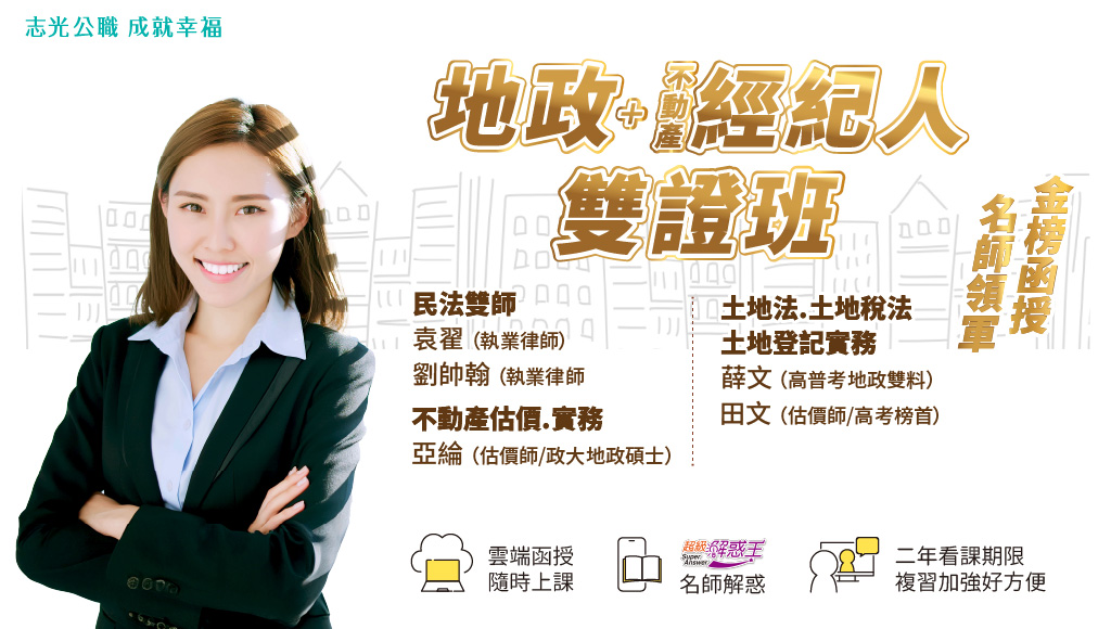 標籤: 專技普考   不動產經紀人   證照   地政士   地政   土地專業登記代理人   土地代書   專技高考