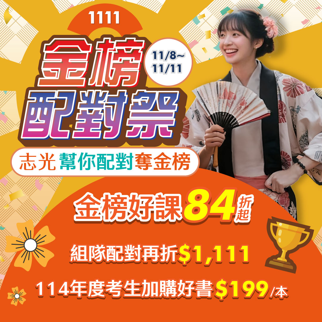 【最新優惠】11/8~11/11金榜配對祭,2人團報現折1111