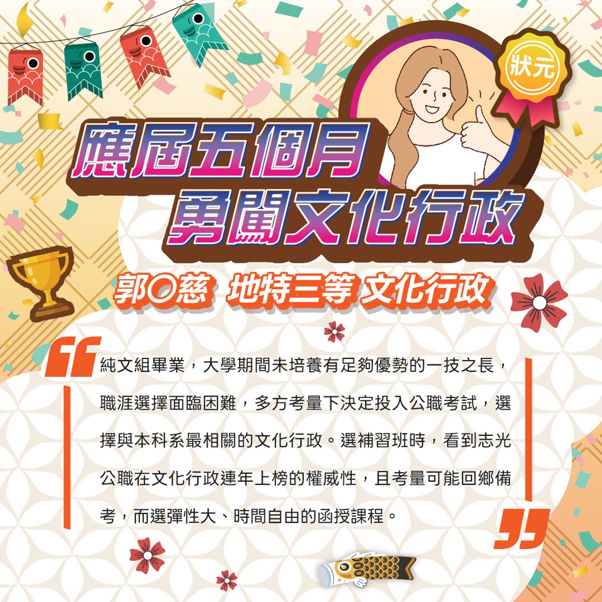 寫作格式技巧、口試體試技巧等,各類加值服務課程,全面強化應試力。