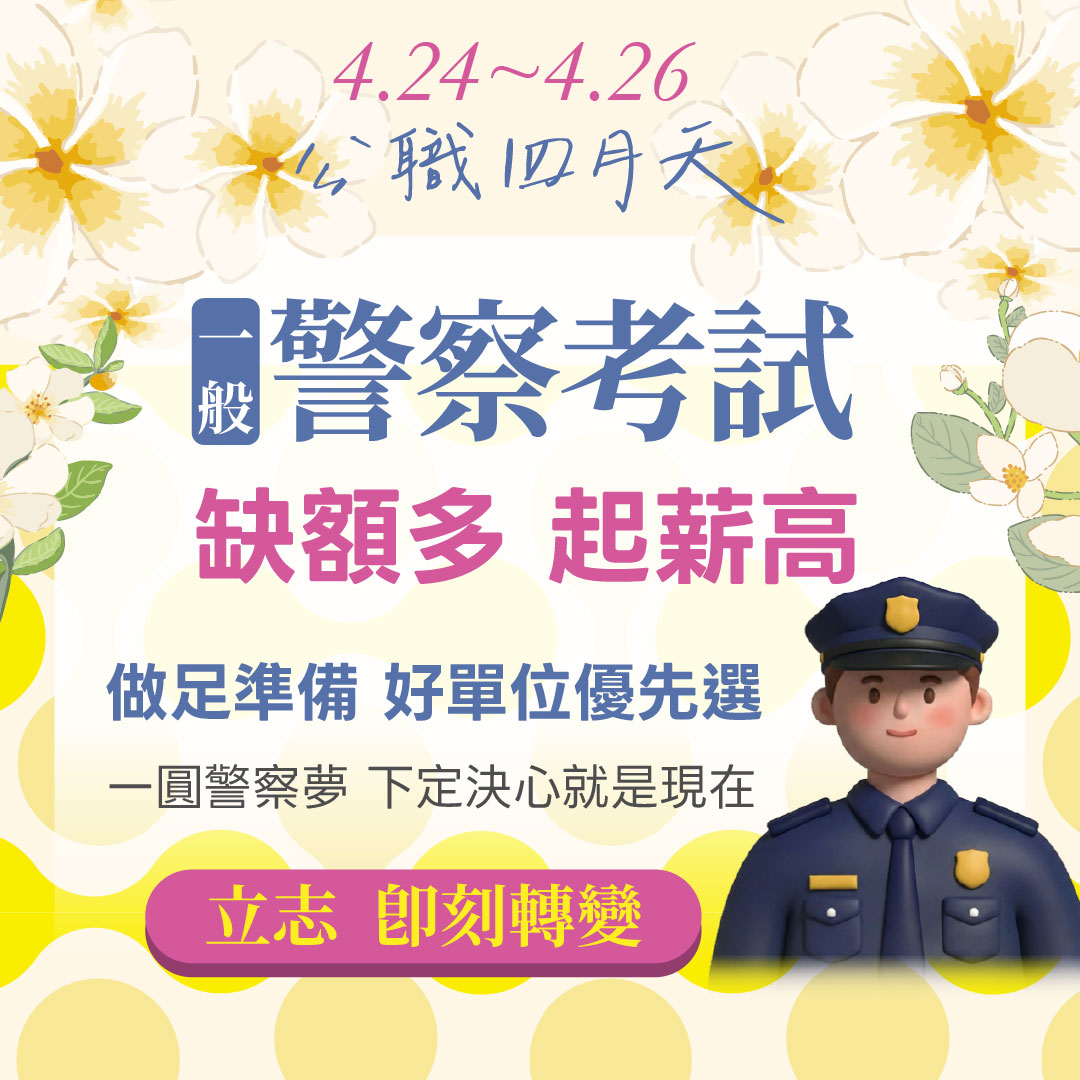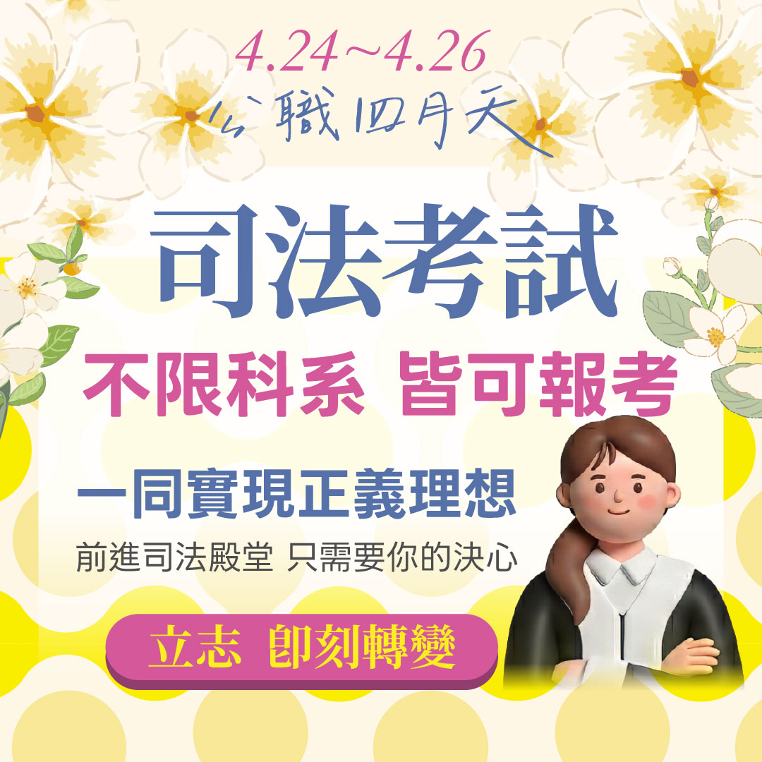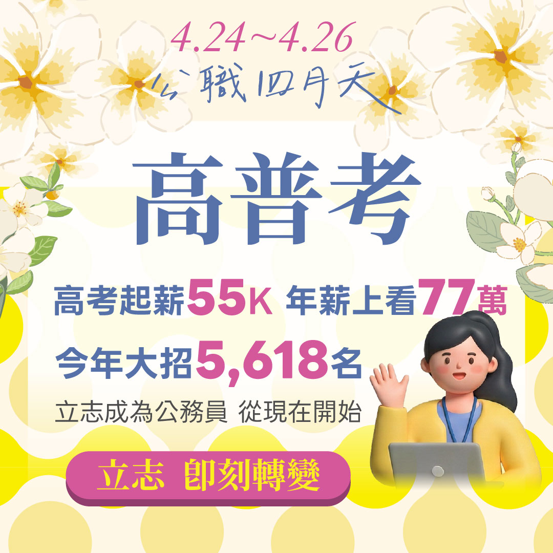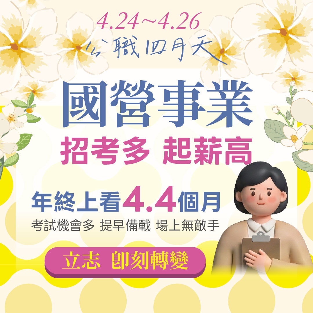 【活動優惠】4/24-26公職四月天 試定贏榜 GO,課程優惠86折起