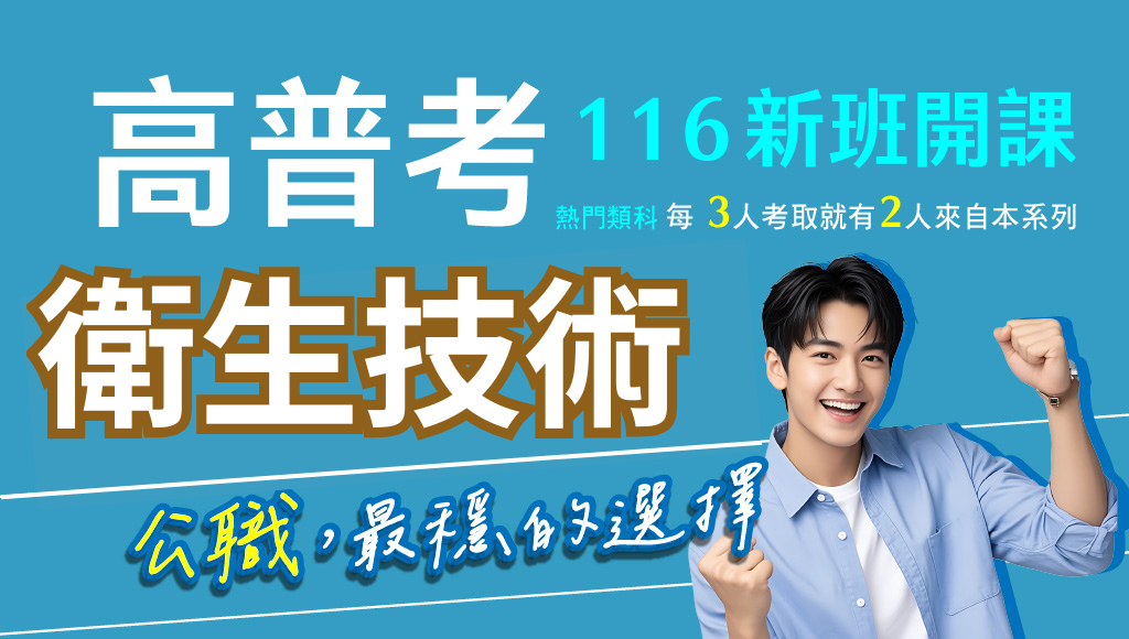 116高普考衛生技術、新班開課,試聽預約中