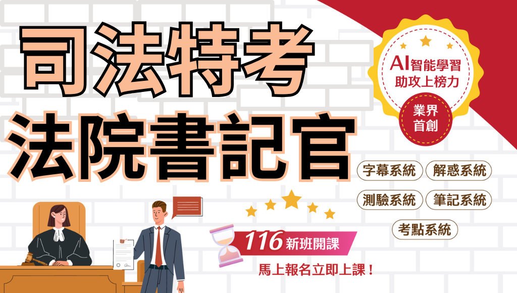 成為司法界的最佳助手是你的目標嗎?那你絕不能錯過「法院書記官」!司法特考,除了司法官考試之外,最讓人耳熟能詳的便是「法院書記官」考試了。法院書記官主要負責協助法官審判或檢察官偵查任務,其實就是檢察官和法官在司法事務上的助手,受檢察官和法官指揮辦事,以利各種司法工作之進行。