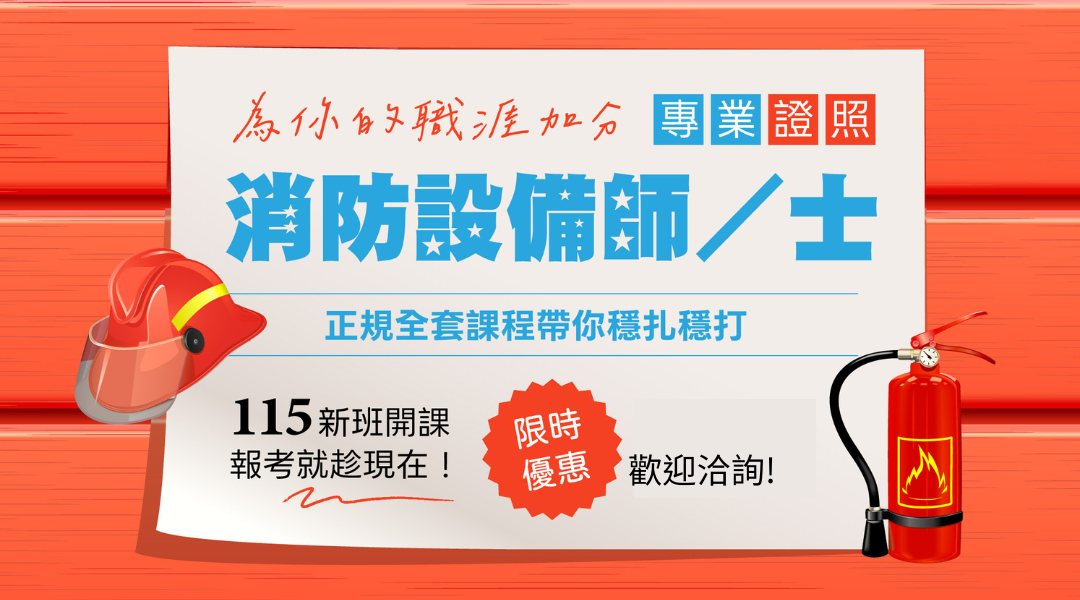 【專技證照】115專技消防設備師/士,高薪證照等您