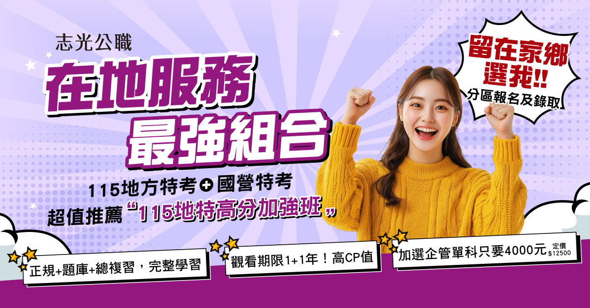 【地方特考】分區報名在地就業 115新班優惠86折起