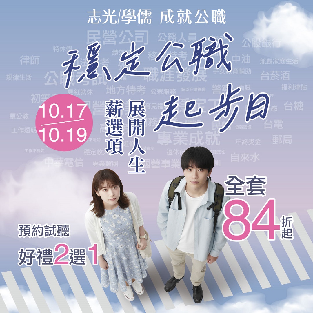【限時特惠】10/17~10/19穩定公職 課程84折起 最高折5000元