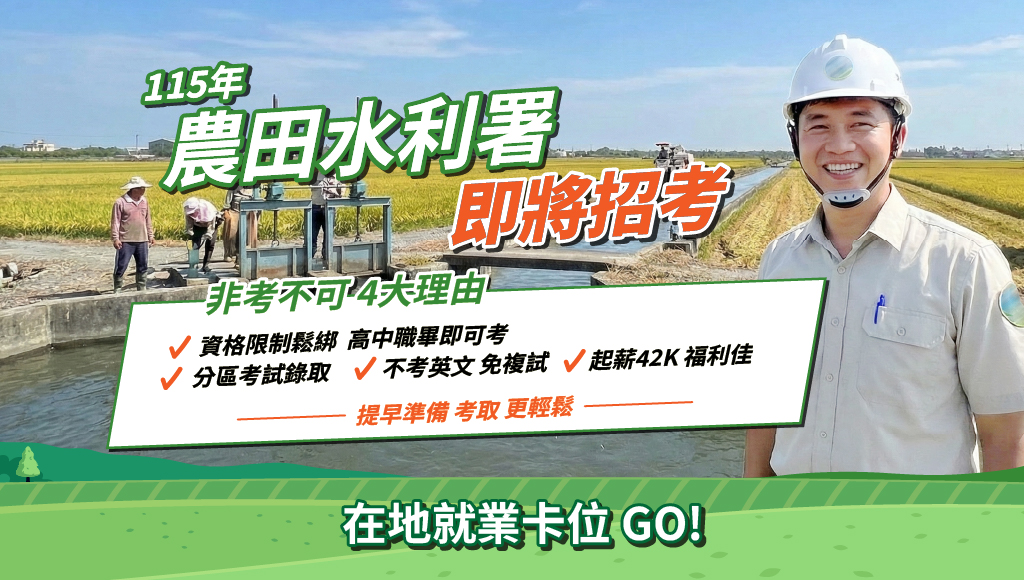 【農田水利署】不考英文 起薪42K 新班開課87折起