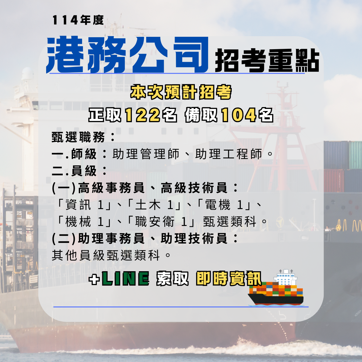 2024年港務局招考消息:開缺206人(正取126人、備取80人),只考3科,適合短衝準備,家住港邊的同學,可以把握機會!