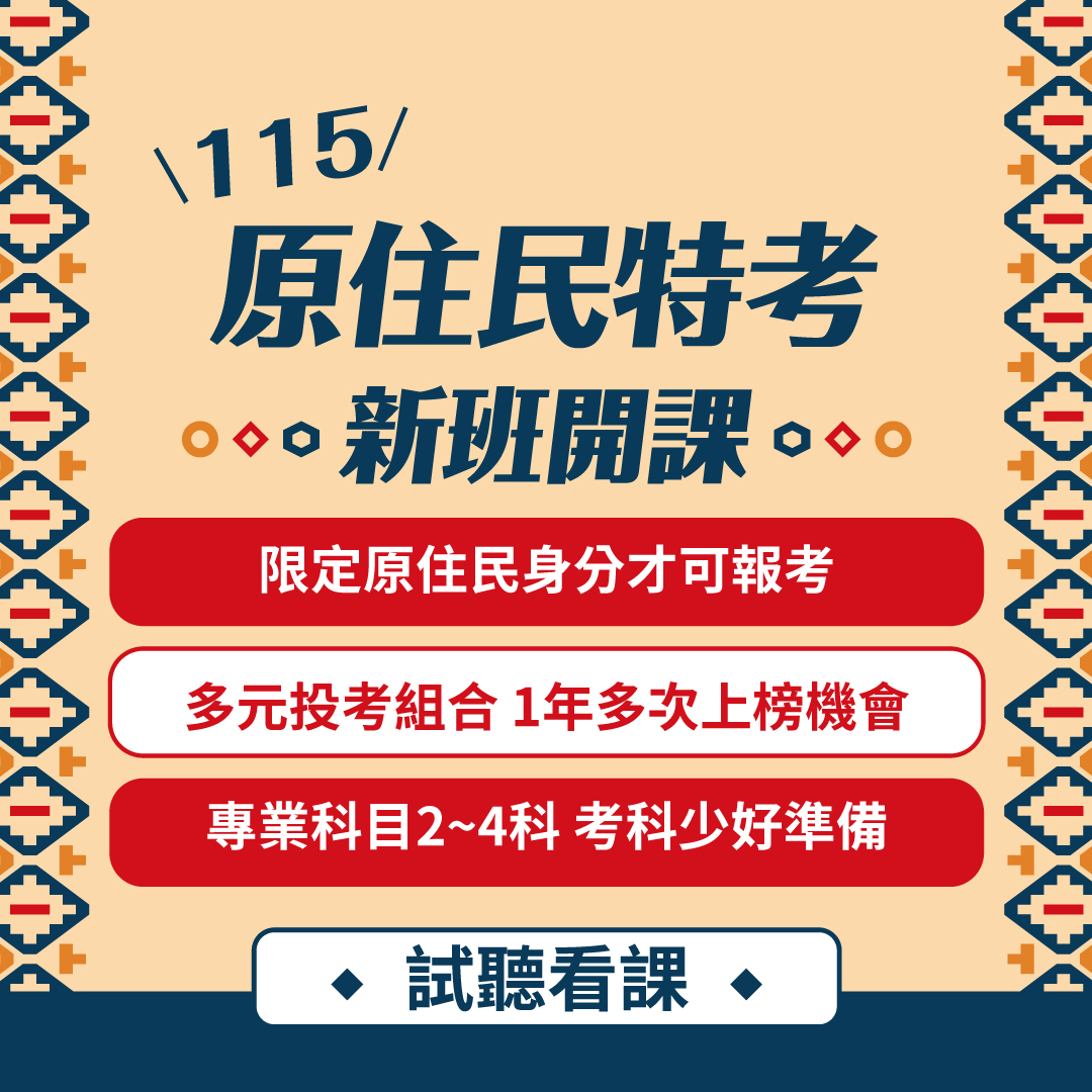 *自113年起,報名原住民特考三等考試應取得原民會核發的原住民族語言能力認證中級以上合格證書。許多原住民無族語認證,若有興趣報考原住民,建議趁早準備考取原住民族語認證,上榜機會高