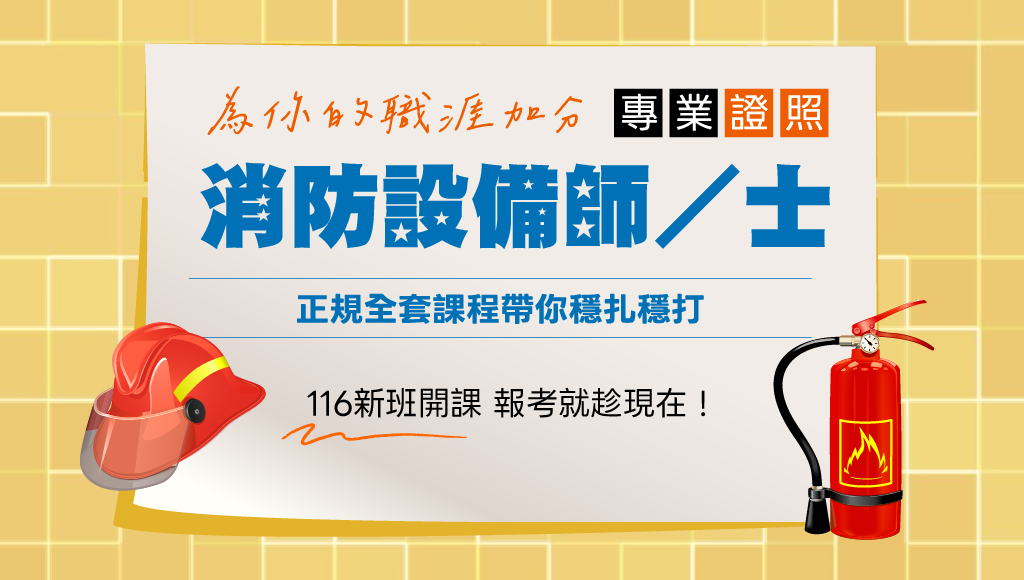 【專技證照】116消防設備士 設備師 證照夯新班優惠77折起