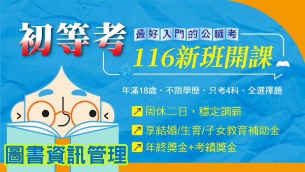 116初等 圖書資訊管理、新班開課,試聽預約中