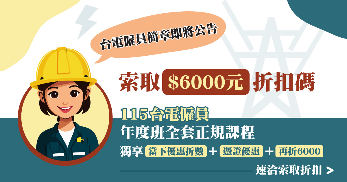 想考115台電僱員?成功志光 搶先幫您備戰2026開設預備課程,適合零基礎考生,高中職學歷即可報考,起薪32K、穩定福利佳,早一步準備,早一步上榜!