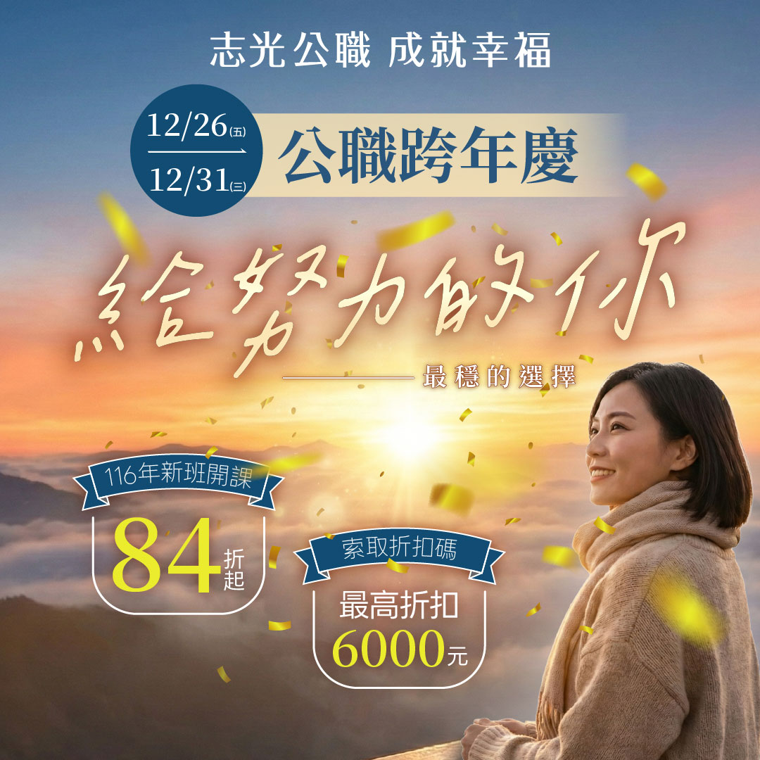12/26-31 公職跨年慶 | 課程84折起 最高再折2000 📣