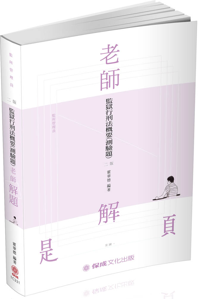 | 熱門推薦:監所管理員適用 ★考前練筆,打通奪分關鍵 ★嚴選霍華德老師、陳介中精心書寫編纂的歷屆試題解答書,跟著高手練題,你也可以變身高手! ★2020司法四等-監所管理員專業科目-題庫系列 |