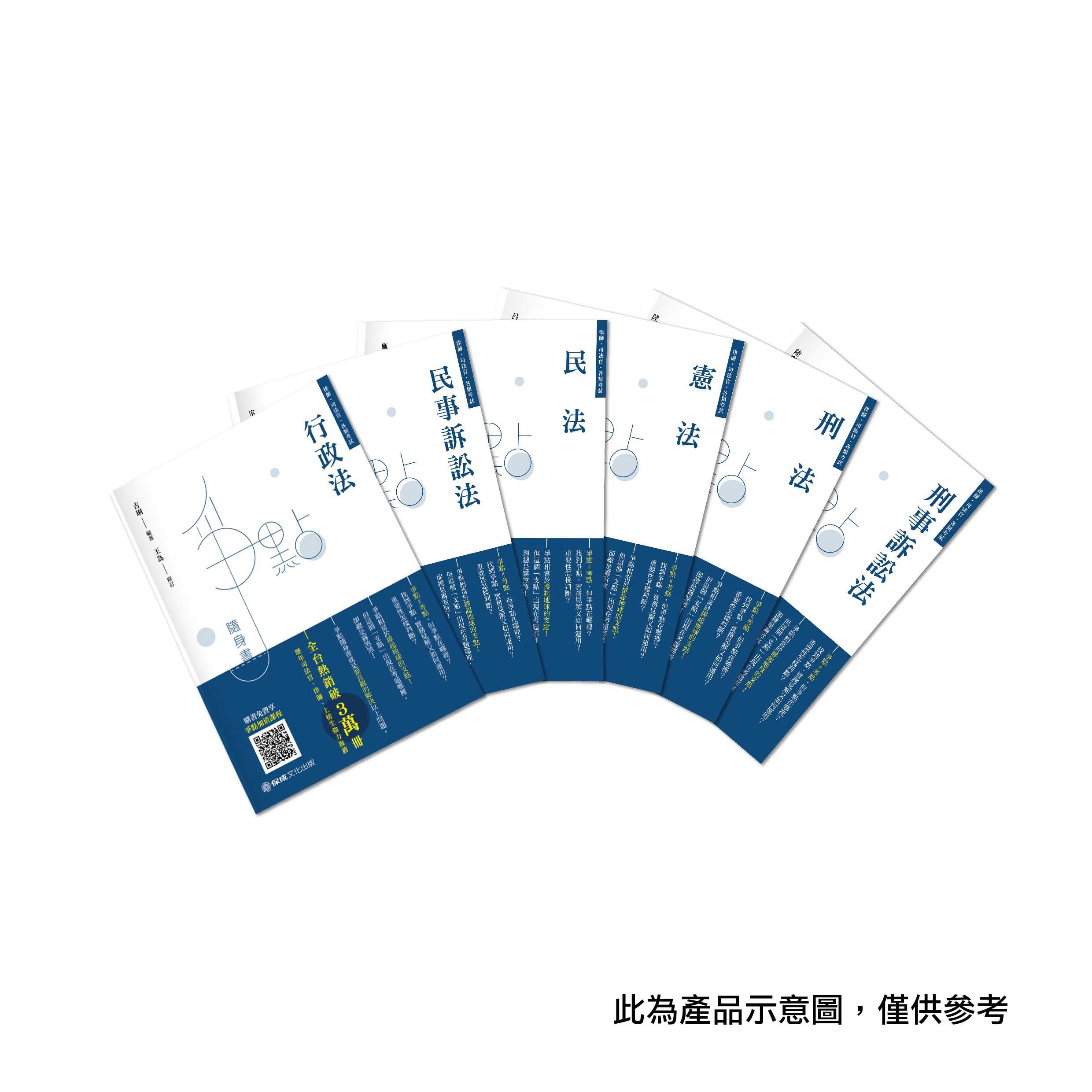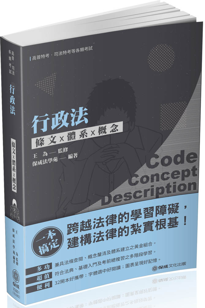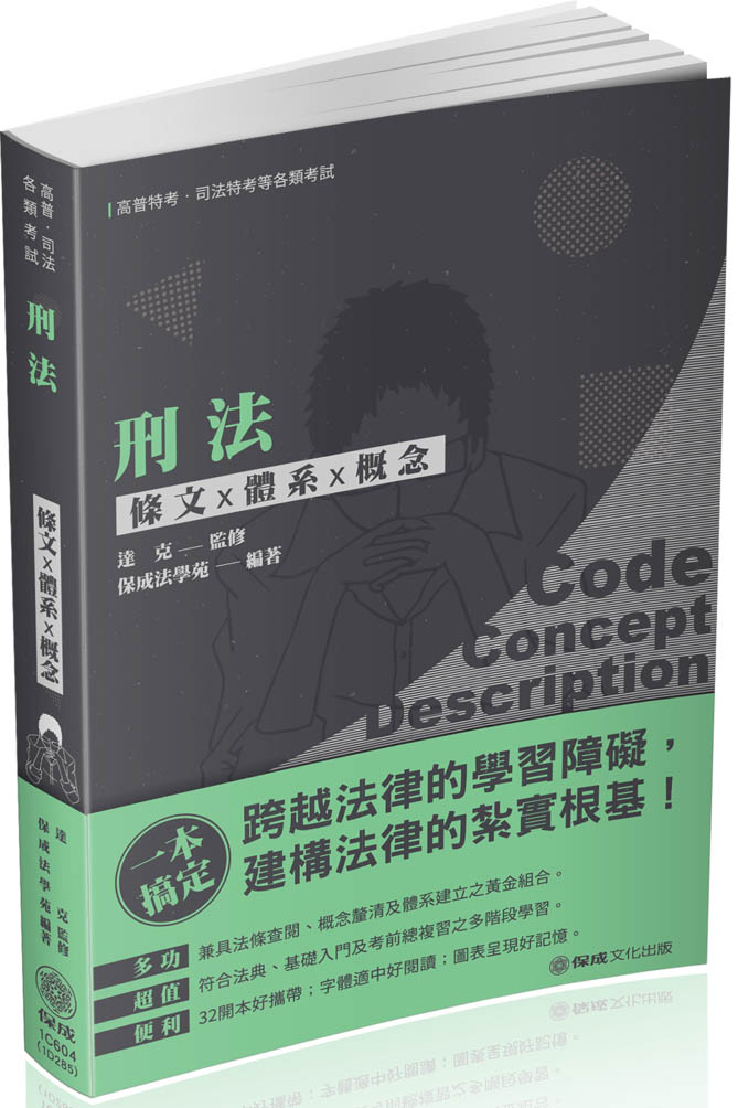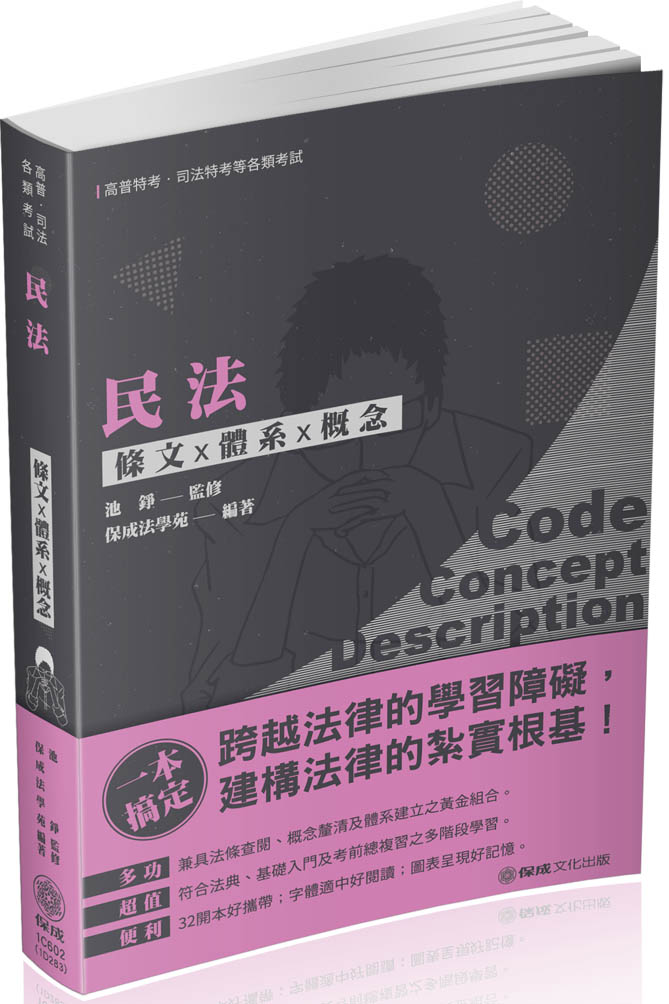 | 熱門推薦:條文X體系X概念 ★除查閱功能外並兼具研讀、準備考試等多項功能。 ★加強對各該條文原意之體會,並援引實務及學者見解,以利讀者查詢及進一步閱讀。 ★以圖表方式,促進學習相關法律概念之理解與區別。 ★讀者能更清楚了解命題趨勢與命題重點所在。 |