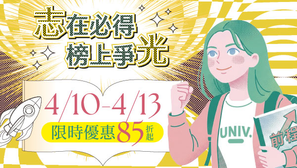 提供完整且符合各考試需求的應試科目,重點清楚、範圍明確,掌握命題趨勢。 |