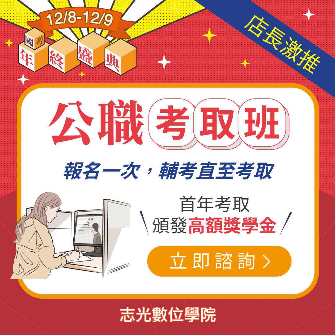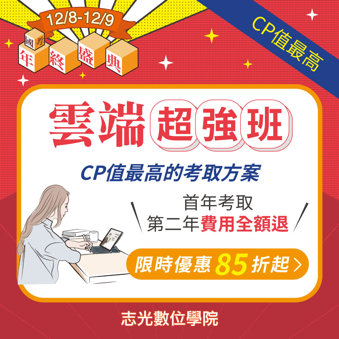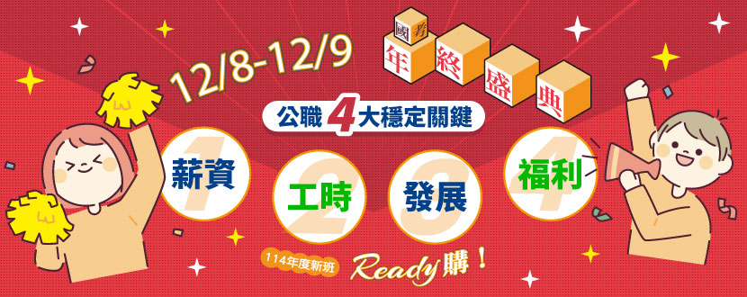 12/8-12/9國考年終盛典 歲末考公職超值優惠專案