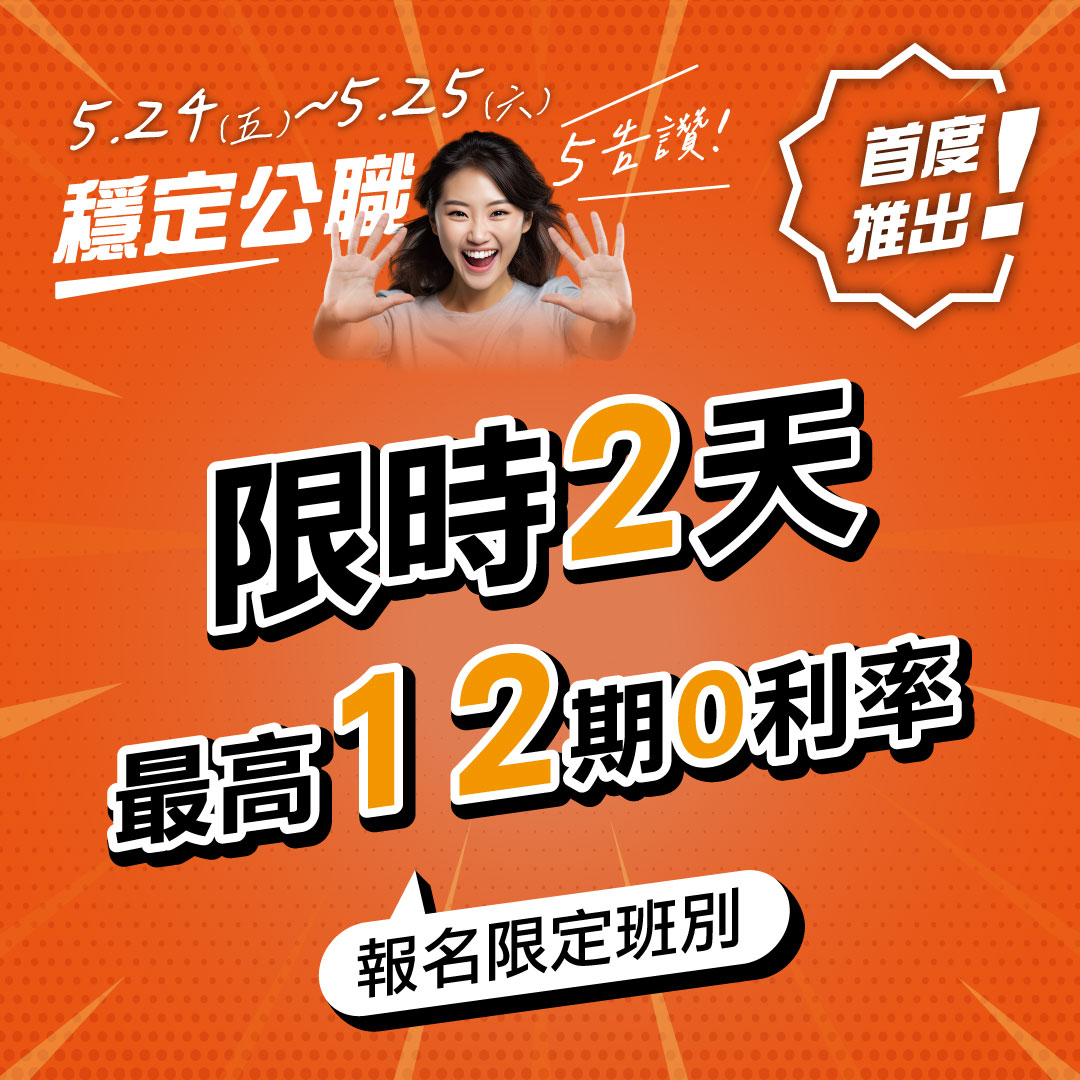 5/24-25穩定公職5告讚,學費輕鬆付最高12期0利率