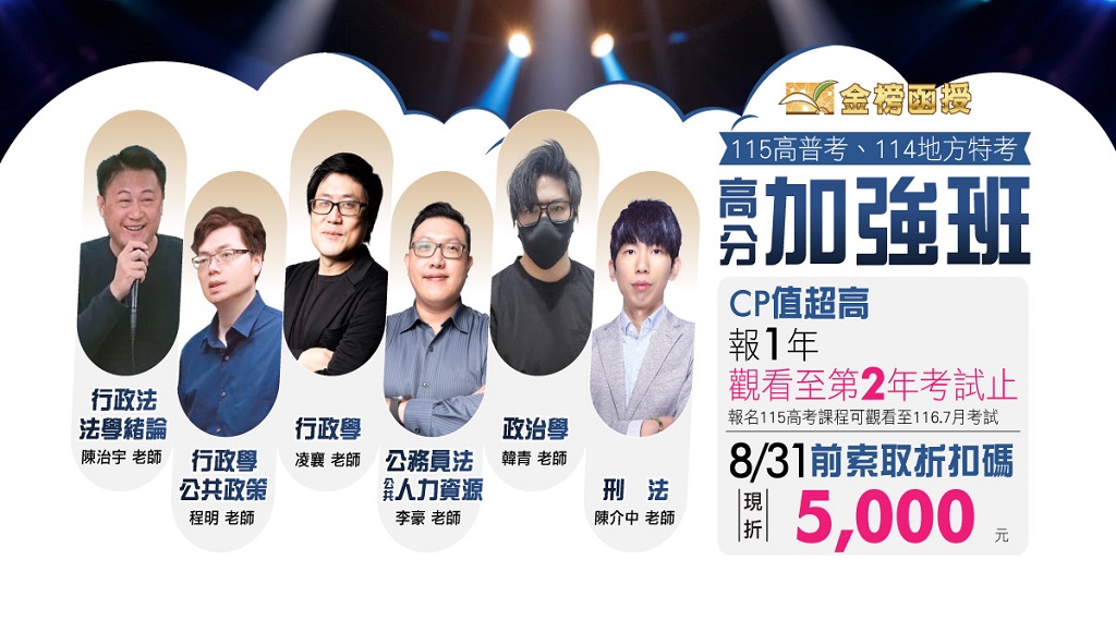 金榜函授115高普考、114地方特考「一般行政/一般民政/人事行政/戶政/勞工行政/法律廉政」函授課程限定優惠,函授兩年看課期限!免費試聽請洽岡山志光數位學院。