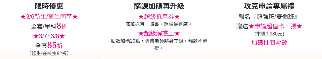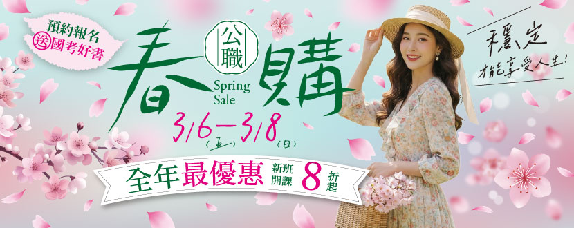 公職春購節優惠|3/6-3/8 公職/國營課程全面8折起