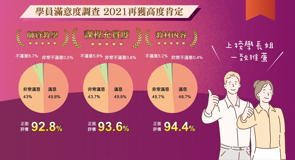 我選擇上課時間彈性的數位學院,櫃台人員非常有耐心幫忙解惑,也結交許多同學一起討論課業,使我程度有顯著提升,可以依自己的步調進度制定讀書計畫,遇到不懂的章節重複觀看,大大提升了學習效率! |