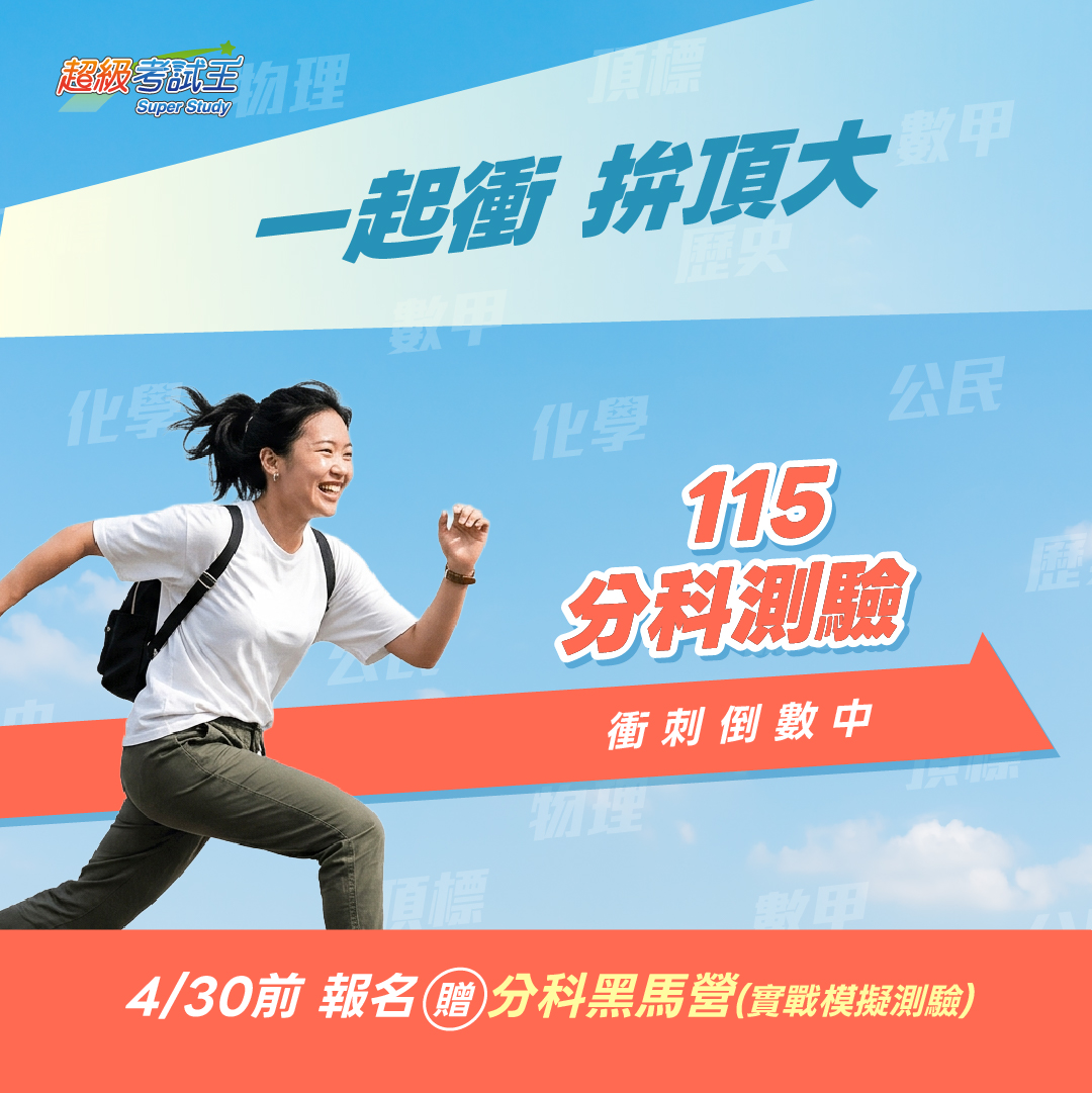 【分科測驗】115分科測驗衝刺開跑,4/30報名即贈黑馬營實戰模擬測驗