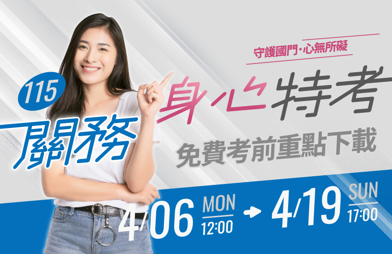 115身心特考簡章 完整輔考服務 歷屆試題下載 優秀錄取榜單
