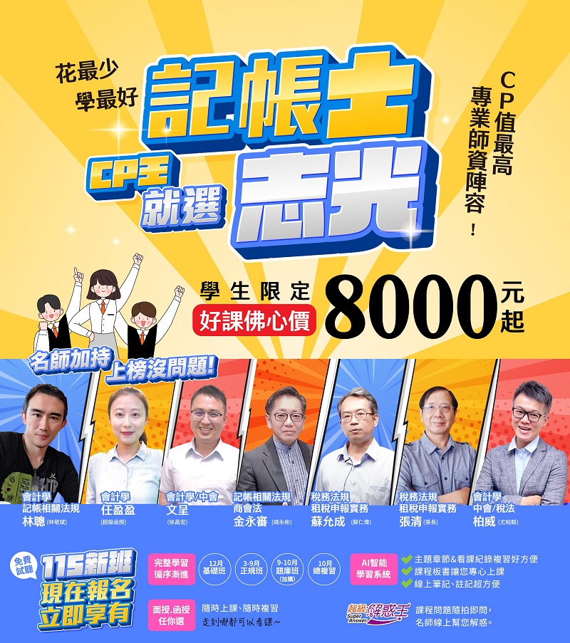 在校考記帳⼠ 就選澎湖志光,好課佛⼼價8000元起