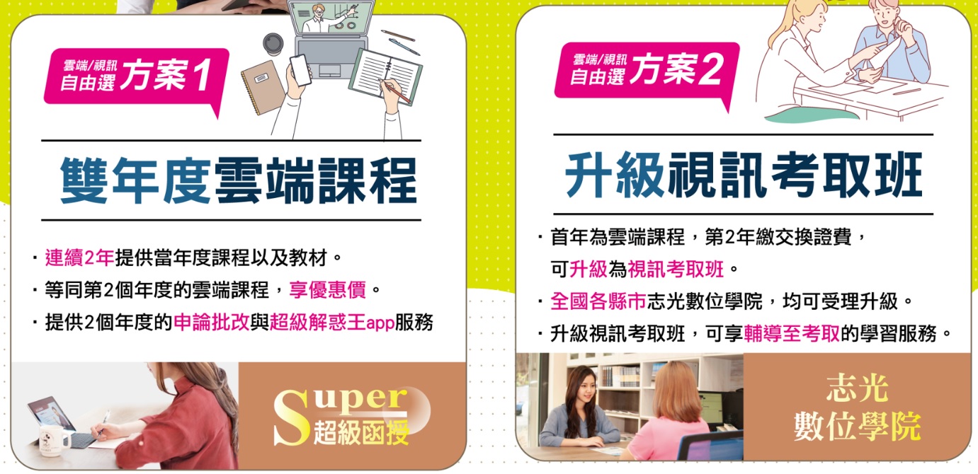 澎湖志光全新推出雲端超強班,CP最高雙年度課程! 首年考取,第二年全額退費,雙年度雲端,第二年可 升級視訊考取班,一兼二顧,防疫也要顧考取。CP值 最高的考取方案,讓你學習自由選,備戰國考不間斷 ,陪你到考取!