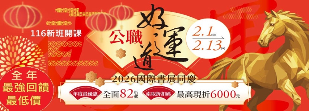 超級函授:全面 82折起 金榜函授:全面 82折起 115地方特考~販售中 116高普考~新班開課中 全套最高折 3500 元 |