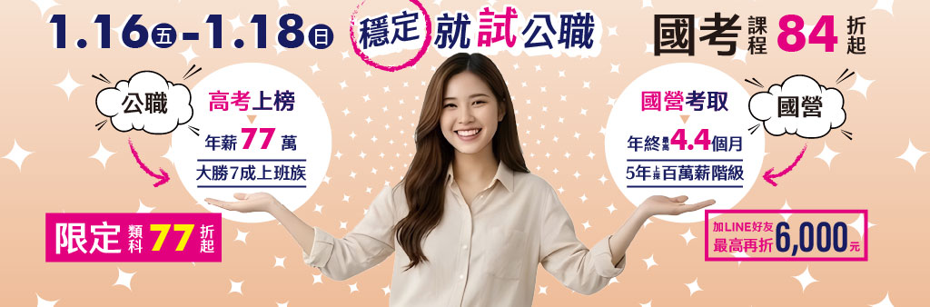超級函授:全面 84折起 金榜函授:全面 84折起 115地方特考~販售中 116高普考~新班開課中 全套最高折 3500 元 |