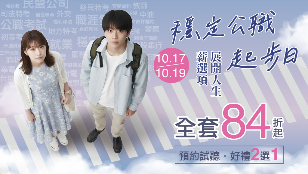 10/17–10/19「穩定公職 起步日」開跑!全套課程84折起,在校生憑證再折2000,多益/日檢加購價2500,錯過要等明年!