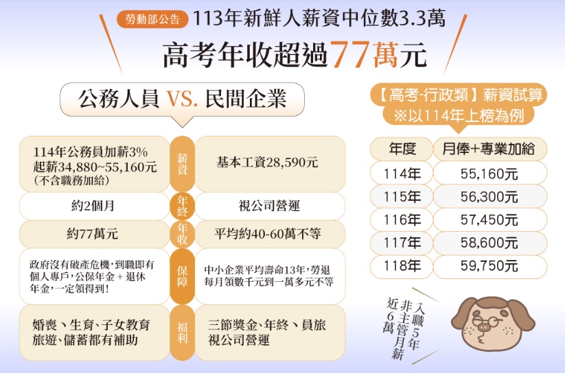 👉 起薪不輸民間,年終獎金、退休保障、津貼補助樣樣有