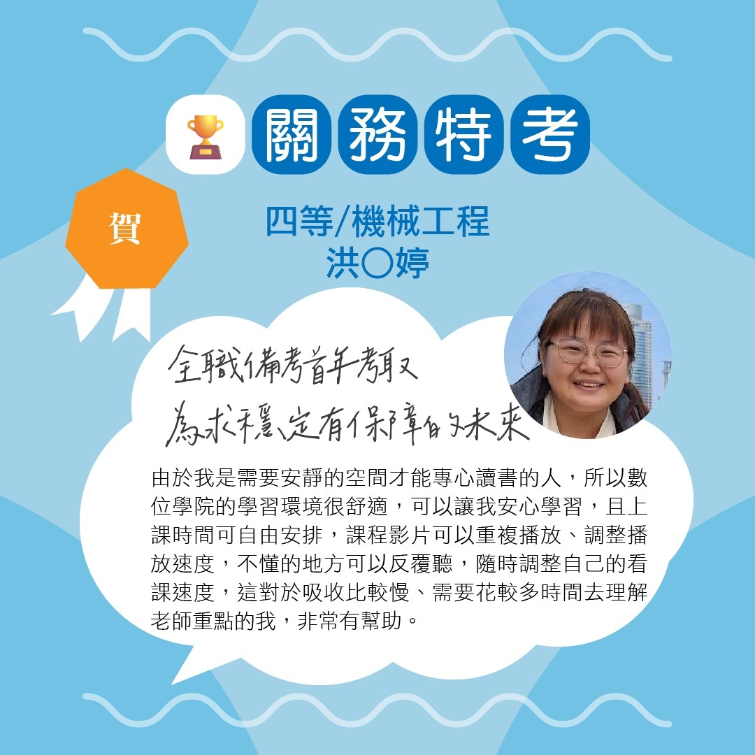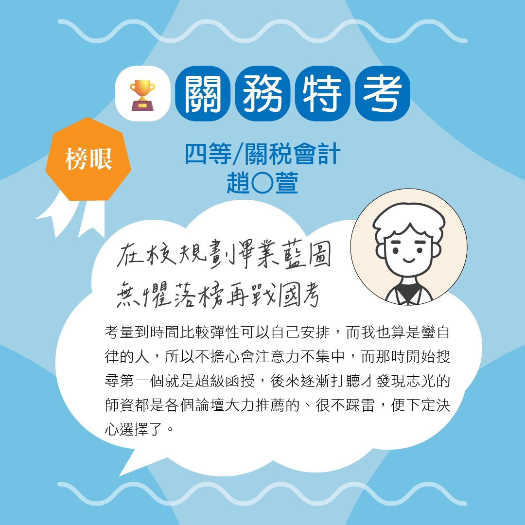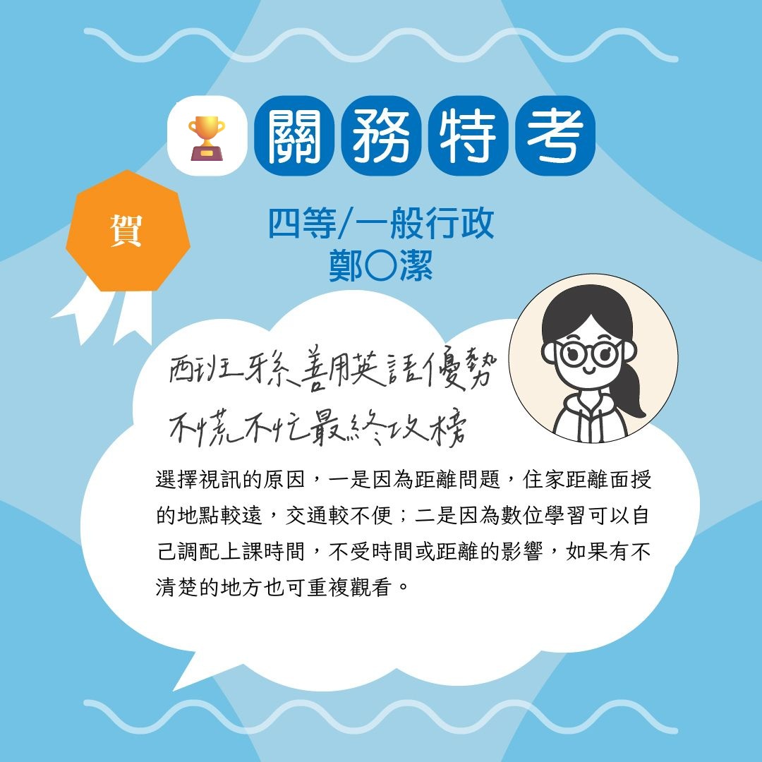 114年關務特考-四等一般行政狀元-林O惠