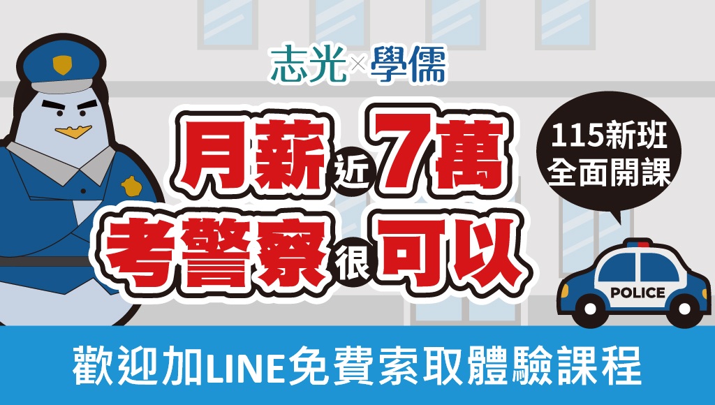 警察補習課程,2026士林班開課限定優惠價;完整課程資訊、師資推薦、使用者推薦評價,提供公職國營招考資訊、視訊、函授課程》台北士林志光
