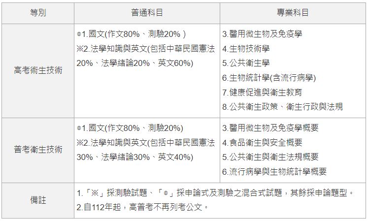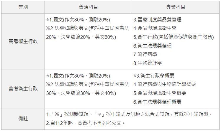 | 科目 | 1.公共衛生行政 2.行政法、衛生行政及其相關法規 |