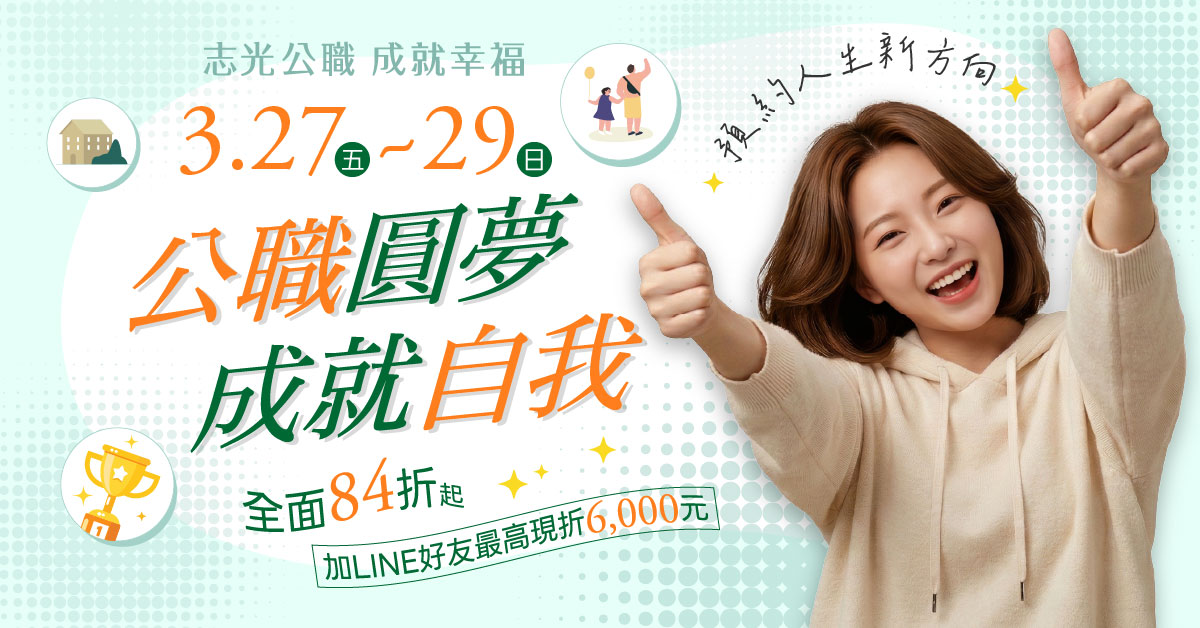 不限科系,皆考選擇題,前進公職;三重區公職補習班,提供專業輔考課程 ,離家近節省交通時間,雲端視訊、函授課程學習便利,上榜生推薦,歡迎加入三重志光line預約免費試聽唷